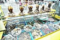 | 刺身屋はもちろん、焼き貝・干し魚・カンジャンケジャン・海鮮鍋・焼き魚・天ぷら・マッコリ(韓国伝統にごり酒)などを売るお店がズラリ! |