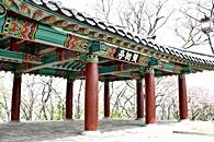 山城に沿って峠を越えると、世祖4年(1458年)に創建された霊隠寺に行くことが出来ます。霊隠寺の前には蓮池があり、錦川の景観を望むことができ、公山城でもっとも美しいところです。また、公山城で一番大きい楼閣として知られている臨流閣は、散策路を上がりきったところにあります。 |