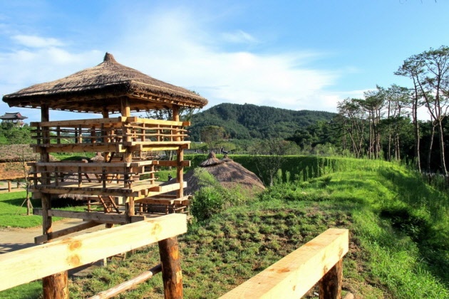 また建国神話の中で高句麗から南方に逃れた温祚(オンジョ)王によって築かれたという百済初期の慰礼城(ウィレソン)という村も再現されています。 |