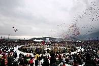 夜には薪の山に火をつけて願い事をする日本でいう「どんど焼き」や火祭りらしく火を入れた缶を振り回す「プルカントン回し」など火祭りらしく火をを題材にした多くのイベントが行われます。 |