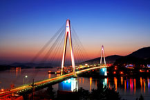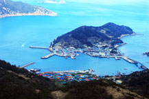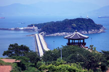 | 梧桐島(オドンド)は別名「冬柏島(トンベクソム)」と呼ばれ,麗水市の花である椿が群生することで知られる小島。麗水市の海岸から陸橋が繋がっており、その陸橋沿いでは海女さんが貝やナマコを採る光景も見ることができます。 |