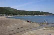 | 麗水市内から車で15分ほどで行ける韓国国内では珍しい黒い砂が特徴の海水浴場。海水浴以外にも釣りや貝採りなどが楽しめる。海岸沿いには民宿や刺身屋などが立ち並び、賑わいを見せます。 |