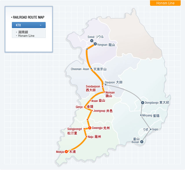 KTX   光明-天安牙山-西大田-論山-益山-井邑-長城-松汀里-羅州-木浦