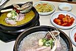 韓国料理には体にいい滋養食がたくさんありますんが、その中でも一番はサムゲタン。若鳥の中にもち米やニンニク、なつめなどをいれじっくり煮込んだもの。韓国に来たことのある方なら、一度ぐらいは食べたことがあると思います。韓国の人の間でもとてもポピュラーなもので、専門店もたくさんあります。そんな国民食のサムゲタンですが、このお店にはノギョン(鹿の角)を入れたものやアワビを入れたものなど、普通とはちょっと変わったサムゲタンが皆様をお待ちしています。どれも漢方薬に使われている材料で、体に良いことでは折り紙付です。美味しいだけでなく、体にいいものが入っていますので、旅行の疲れを取ることができますよ。