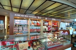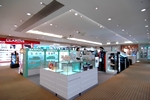免税店のメインのフロアから少し離れた「カヤグムホール」横にある韓国国内商品を扱ったお土産、コスメコーナー。岩ノリや高麗人参商品、キムチなどの食品のほかに、電子製品、韓国特産紫水晶などのアクセサリー、そして女性に人気の高い韓国コスメショップが並んでいます。