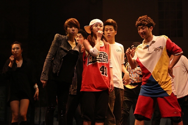ヒップホップの服装をしたソヨンにB-boyたちはびっくり。
