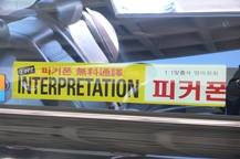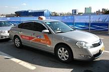 「Free Interpretation」書かれたステッカーの貼ってあるタクシーでは携帯電話を使って案内センターで待機している通訳者と3者で会話ができます。意思疎通の問題を解決しようと同時通訳システムを兼ね備えたタクシーも運行中。 |