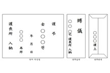 香典の目安としては3万ウォンと言われますが、親しい場合にはその度合いにより5万ウォンから10万ウォンの間を包みます。香典袋は特になく、白い封筒の表側に「賻儀」と記します。裏に名前を記入し、住所などは必要ありません。