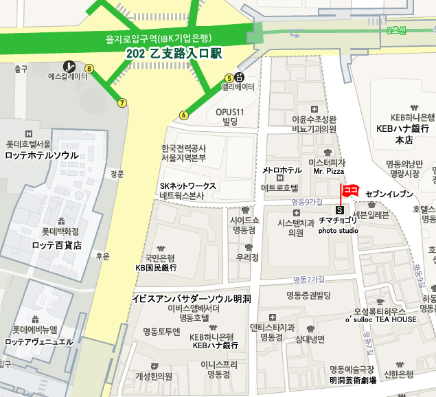 現地 アクセス  地下鉄2号線乙支路入口(Euljiro1-ga)駅5/6番出口徒歩3分