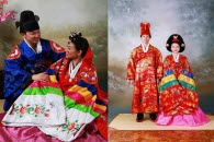 ファンジニとは韓国でドラマ、映画化もされたほど有名な李氏朝鮮時代の妓生(キーセン:日本でいう芸者)。ドラマではその豪華で艶やかな衣装が話題になりました。そのファンジニの衣装を着れるコースがこちらです。 チマチョゴリ村では男性の韓服も豊富に揃っていますので、カップル、またはご夫婦揃っての撮影も可能です。衣装は一般の韓服から朝鮮王朝の王.王妃スタイルまで様々です。