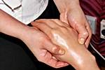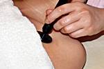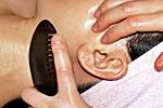 東洋医学では体中のツボとツボとを繋ぎ、体内エネルギーである「気」が流れる道を「経路」といいます。「気」がスムーズに流れずに停滞してしまうと体調不良を起こすといわれ、ツボや経路を刺激し、「気」の流れを円滑にし、体調不良を改善するマッサージを経路マッサージといいます。五臓六腑の色に合わせた6色の石を使い、体内に溜まった毒素を除去し、「グアシャ」と呼ばれる水牛の角でできたヘラを経路の流れに沿ってさすっていきます。 「グアシャ」で肌を擦ると、赤味が表面に現れる部分がありますが、この部位により弱っている内臓や経路がわかります。同時に指圧棒や手を使ってツボを刺激し、マッサージ効果を高めてゆきます。