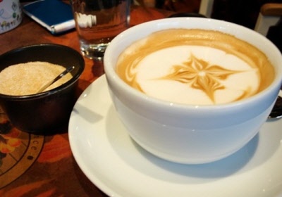お茶する時間を取ってくれていたので、ラテを注文。かわいいラテアートで仕上げてくれて