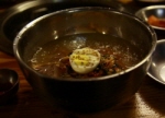 ランチにキムチと黒米の麺食べてきました。 ちょうど12時過ぎだったんで混雑覚悟で行ったんですが まさかのお客ゼロ... オバちゃん達も仕込みの真っ最中の様で 一瞬迷いましたけどせっかくなので 前から食べてみたかったキムチと黒米の麺を注文しました。 記事ではプラスチックの器で写ってましたけど 私が行った時は冷たいアルミの器でキムチも細かく刻まれていました。 スプーンは置いてなかったんでまずはそのままスープを飲んでみると さっぱりとしててすぐ「おいしい!」って思いました。 麺もコシがあって食べ応えがありました。 でも食べ続けていくうちにすごく寒くなって スープを最後まで飲めなかったのが悔やまれるとこかな... あとはもう少しお客さんがいてくれたら良かったのに... 広~いお店に私達だけポツンと座ってるのはちょっとキツカッた。 でもまた食べたいです。