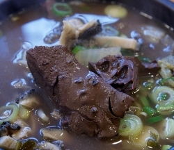私も行ってきましたよ。 鍾路に行ったらこのお店に行こうと迷わずお店に入ってへジャングを注文。 確かにグロすぎるものがゴチャゴチャとタップリ入ってて 女性には向かないかもしれないですね。私はいけるクチでしたが。 スープだけだったら気に入る人もたくさんいるんではないかと。 確かへジャングは二日酔いの人がよく食べるって聞いてたけど 昼過ぎからへジャングをつまみにソジュを飲んでる人が多いのには驚きました。 そうゆう楽しみ方もありなんでしょうね。 > > > 先週行ってきました。 > 何も考えずお昼に行ってしまったら大混雑!お店は新しくて割と広いほうだと思いますが > それでもほぼ満席。お店のおばちゃんがテキパキと片付けてくれて5分ほどで席につけました。へジャングですが、見かけよりあっさりさっぱりしてて、塩を入れて食べました。途中まで食べて、赤茶色のブツブツ穴のあいたやわらかい物体が血の塊だということに気づいてびっくり。意外にもクセもなく食べられました。美味しかったです。 >