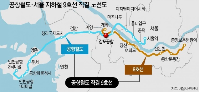 ソウル市と仁川市は11月17日、ソウル市の地下鉄9号線と仁川空港鉄道事業の