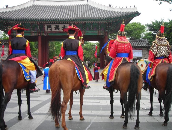 徳寿宮の正門である大漢門の前で行われている守門将交代儀式に火曜日の 11時の回のみ登場していた朝鮮時代の伝統衣装に身を包んだ騎馬隊が 火曜日の他に、水曜日から日曜日には徳寿宮から光化門までの通りを闊歩します。 ◇毎週.水曜日から日曜日 パレードルート:徳寿宮大漢門前→ソウル広場→太平路(テピョンロ)→光化門広場→徳寿宮 時間:15:30~ ◇毎週.火曜日 パレードルート:徳寿宮大漢門前→清渓広場(チョンゲクァンジャン)→普信閣(ポシンガッ) 時間:11:00~ ※天候や現地事情により中止になる場合もございます。
