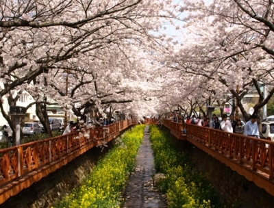 軍港の街.鎮海(チネ)で毎年桜が満開の頃に開催される鎮海軍港祭が 今年は4月1日から11日間に亘って開催されます。 1952年に韓国で初めて李舜臣(イ.スンシン)将軍の銅像を建て追慕したことから 始まったこのお祭りは今年で49回目を向かえ、フェスティバル期間中には200万人以上の 観光客が訪れる韓国最大の規模の祭りに発展しました。 鎮海には34万本以上の桜の木があり、特に鎮海駅から徒歩5分の距離にある 余佐川(ヨザチョン)は川辺に咲く菜の花と川の両サイドに咲き誇る桜の花との コントラストが美しく、海軍士官学校や帝皇山(チェファンサン)公園と共に 特に人気の高い桜スポットとなっています。 フェスティバルでは人気歌手による祝賀公演や伝統公演、各種体験行事、 李舜臣将軍追慕式など多彩なイベントが行われます。 期間:2011年4月1日(金)~10日(日) 会場:鎮海市一帯(鎮海駅前ロータリー特設舞台、海軍士官学校、各桜スポットなど) 問合せ:055-225-2114