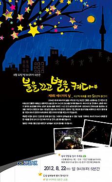 2004年8月に最大電気使用量記録を機にこれ以上記録を伸ばさない為に始まったエナジーの日は今年で9回目を向かえました。「電気を消して星をつけよう」というスローガンを基に午後14時~15時までの間、20分間エアコンを消し、1時間エアコン設定温度を2度上げる運動や午後9時からの5分間電気を消す運動等のイベントがソウル広場をはじめとする全国16ヶ所で開催されます。 <日程> 2012年8月22日(水) <場所> ソウル広場をはじめとする全国16ヶ所 <プログラム> 14:00~15:00 室内温度2℃アップ ・20分間エアコンを消す ・1時間エアコン設定温度2℃アップ 14:00~20:00 体験・展示プログラム 14:00~19:00 炭素ゼロのフードコート 17:00~19:00 大縄跳び大会 19:00~20:00 月光音楽会 20:20~21:10 第9回エナジーの日記念式 21:00~21:10 5分間全国消灯 21:10~21:30 食後行事 <詳細> http://energyday.org/ (韓国語) ※現地での事情により現在とは記事の内容が異なる可能性がありますのでご了承下さい。