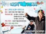 2012年12月28日~来年2013年1月6日まで江原道(カウォンド)麟蹄郡(インゼェグン)元通里(ウォンドウリ)にてさまざまな冬のイベントが開催されます。ソリ、スケート、穴釣りなどのレジャーイベントはもちろんのことフェイスペイントや文化公演などイベントが目白押しです。 韓国の冬を味わいたい方、必見です。 2013内雪岳(ネソルアク)冬川辺祭り (韓国名:2013내설악겨울강변축제) 日程:2012年12月28日(金)~2013年1月6日(日) 場所:江原道(カウォンド)麟蹄郡(インゼ江グン)元通里(ウォンドウリ)イベント会場 主なイベント: ★公式行事 12/31(土)14:00~14:30 式典行事、開幕式 ★公演行事 JOBバンド公演、ダンス公演、軍楽隊祝賀公演、氷彫刻公演 ★体験広場 氷サッカー、穴釣り、ソリ、スケートなどなど ★イベント広場 人間カーリング、マッコリ早のみ大会など ★思い出の食べ物市 焼き芋、焼きとうもろこし 、焼きもち、餅つき大会など ★文化体験イベント 風船アート、フェイスペインティングなど ★展示広場 雪彫刻展示、雪花など ★舞台行事 郷土料理広場、農特産物販売場 参加費用:一部除いて有料 公式サイト:http://내설악.kr/main/index.html(韓国語) ※現地での事情により現在とは記事の内容が異なる可能性がありますのでご了承下さい。