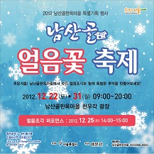 12月22日(土)~31日(月)まで南山コル韓屋村(남산골한옥마을/ナムサンコルハノクマウル)の泉雨閣(チョンウガク)広場にて 【2012南山コル氷の花祭り】が開催されます。お祭りでは氷で作られた大規模な彫刻の数々が立ち並び、その美しさに寒さも吹き飛ぶはず。12月25日14時~には、氷の彫刻パフォーマンスもあり見応えたっぷりです。