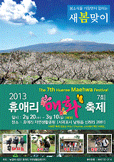 2/20(水)~3/10(日)まで済州島のヒュエリ自然生活公園にて『2013ヒュエリ自然生活公園 梅の花まつり』が開催されます。今年で第7回目を迎えるこの『梅の花まつり』ですが、毎年たくさんの観光客が足を運びます。韓国国内で最も早く春を向える済州島。今年も済州島の水色の空を背景に綺麗な梅の花で公園一面ピンクの色で染まります。 またこのヒュエリ自然生活公園には、黒豚SHOW、乗馬体験、韓国伝統あそびなどイベントが盛りだくさん。大人も子供も楽しめる自然生活公園に行ってみてはいかがでしょうか。