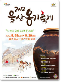 5/2(木)~5(日)までに4日間、蔚山(ウルサン)にて『2013蔚山(ウルサン)陶磁器祭り』が開催されます。陶磁器作りは勿論のこと、伝統婚礼再現及び体験、韓国の発酵文化体験などさまざまなイベントが目白押しです。韓国滞在の思い出作りにいかがでしょうか。 【期間】2013年5月2日(木)~5日(日) 【場所】蔚山広域市(ウルサンクァンヨクシ) 蔚州郡(ウルサングン) 外高山(ウェコサン)甕器村(オンキマウル)一帯(韓国語:울주군 외고산 옹기마을 일원) 【アクセス】★ソウルから ソウル駅からKTXに乗車し、蔚山(ウルサン)駅にて下車。 蔚山(ウルサン)駅からリムジンバス5004番に乗車し、蔚山(ウルサン)大公園前にて下車し、更に市内バス225番、405番、507番、715番、1705番に乗車し、蔚山(ウルサン)甕器村(オンキマウル)にて下車。 【公式ホームページ】http://www.ulsanonggi.or.kr/index.php (韓国語)