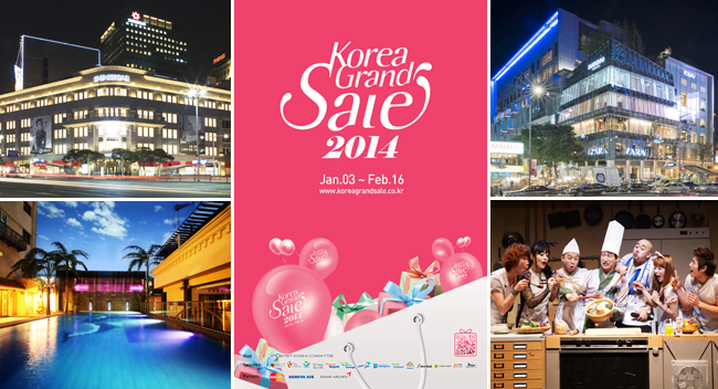 外国人向けのショッピング観光フェスティバル「コリアグランドセール2014」が、 ソウルおよびソウルを中心とした首都圏をはじめ、釜山、光州、済州など、 外国人が多く訪問する地域を中心に2014年1月3日(金)から2014年2月16日(日) まで開催されます。 この「コリアグランドセール」ではショッピング、宿泊、飲食、観光名所、公演など、 約2万7000以上の企業が参加し、外国人観光客および韓国在住中の外国人を対象に、割引サービスを提供します。 公式ホームページで統合クーポンをダウンロードして会計の際に該当の店舗で提示すると、 割引きされた値段で買い物をすることができます。 ただし、プロモーションや他の割引きクーポンとの併用はできません。 詳細は、コリアグランドセールのホームページで確認することができます。 コリアグランドセール2014 ・ 場所:ソウル、ソウルを中心とした首都圏および大都市など ・ 期間:2014年1月3日(金)~2014年2月16日(日) ・ 割引クーポンのご案内:ホームページでクーポンをダウンロードして参加企業で買い物の際に提示してください。 ● ホームページ:http://www.koreagrandsale.co.kr/jp