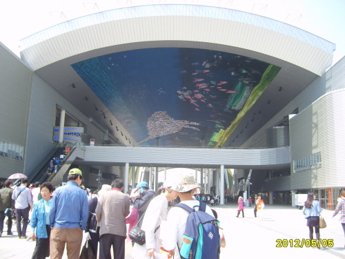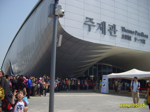 正式オープン前の5月5日にリハーサル?オープンした麗水エキスポに行ってきました。 麗水(ヨス)駅の真横にあるゲートにはずらーっと人が並び、 入場まで1時間近く待たされて入る前から疲れてしまいました。 入場する際も簡単なセキュリティーチェックを受けたんですが、 スタッフには英語圏の方も含まれていました。 やっと入ったと思ったらとにかく人が多く、一番の目的だった白イルカのいるアクアリウムは まさかの5時間待ちでとっとと諦め、テーマ館へ... が!テーマ館の列と思って並んだところが別のものだったらしく 横っちょにあった海洋ベスト館に入ることに。 う~ん、イマイチでした。 結局その後はウロウロと会場を歩き回ったんですが、その当時は まだまだ工事中の場所が多く、会場内の日本語案内も少ないし スタッフも慣れていないようで対応はイマイチな感じでした。 一旦会場の外に出ると一回しか会場に戻れないシステムなので 人がびっしりで座る場所もない会場を歩き回るのはつらかったです。 後からニュースをみたらその日は11万人訪れていたらしい... 開場前から並んで入った別の友人グループは、アクアリウム、テーマ館、 韓国館にしっかり入れてとっても楽しかったと言ってました。 私は見れませんでしたが、夜のレーザーショーがものすごくキレイらしいです。 事前に展示館を予約しておけばもっと楽しめたなと後悔しまくりです。 平日だったらかなり空いているようなので、機会があれば リベンジに挑戦したくなりました。