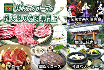 広い敷地内に韓国式庭園も持つ超大型焼肉専門店