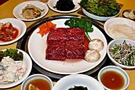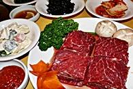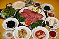 味付けカルビ、プルコギ、豚の5枚肉、牛舌(たん)、冷麺など