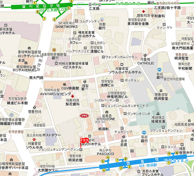 現地 アクセス  地下鉄2号線乙支路入口(ウルチロイック、uljiro1ga)駅6番出口 から徒歩5分