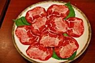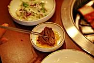 こちらのお肉は国産の高級韓牛をご提供しています。生カルビは味つけをせずに新鮮な牛肉本来の味を楽しむことができます。 あえてタレではなく、塩だけで食べて欲しい一品です。