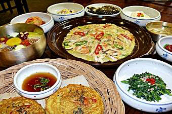 石焼きビビンバ、プルコギ、海鮮お好み焼、緑豆お好み焼きなど