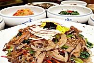 お薦めは何と言ってもビビンバ。生肉のユッケがのっているユッケビビンバ、この店の看板料理の全州伝統ビビンバ、おこげも美味しい石焼ビビンバ、イイダコの入ったナクチビビンバの4種類があります。どれも、甲乙つけがたい美味しさ。ぜひ、食べてみてください。そしてもう一つのお薦めはチャプチェです。緑豆の粉で作ったタンミョンという麺をゆでて、野菜や肉といっしょに炒めあえたもの。お祝い事があるときなど家庭でも作られる料理で、辛くありませんので子供にも人気のあるメニューです。