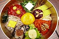 全州ビビンパブは3大料理のひとつと言われ、赤、黒、白、緑、金の5色に揃えられた色彩も鮮やかなな料理です。卵やナムルといった食材のほかに銀杏、松の実、胡桃等木の実、またユッケも含まれていて、滋養食とも言えます。 「古宮」では牛肉のダシを使ってご飯を炊き上げているため味の良さもさることながら、栄養バランスの更に良いものに仕上がっています。
