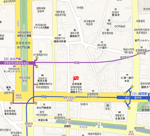 ソウル市 鍾路区(チョンノグ) 鍾路1街(チョンノイルガ)24番地 ルメイエル鍾路タウン1F 123−1
