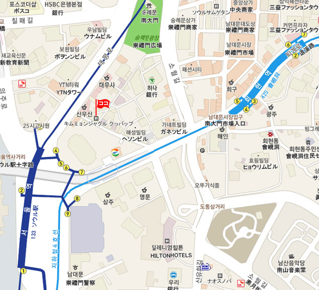 住所 ソウル特別市 中区(チュング)南大門路5街(ナンデムンロオガ)12-15