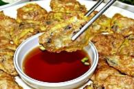 牡蠣にジョンを作るタネをくぐらせ、油であげたシンプルなクルジョン。醤油ベースのソースにつけていただきます。 牡蠣の美味しさを十分に楽しめる一品で、お酒のおつまみとしても人気が高いです。