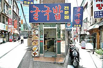 最近韓国でも健康ブーム。<ウェルビング>というキーワードで、新しいメニューもどんどん登場しています。この<クルクッパッ>もそんなウェルビング・メニューの代表格。繁華街のあちこちで見かけるようになりました。ここ「キムミョンジャ・クルクッパッ」の看板メニューは、もちろん<クルクッパッ>。クルとは牡蠣のことで、牡蠣スープご飯のいう意味になります。韓国でも牡蠣の料理はいろいろあります。代表的なものは、このクッパッ以外に、牡蠣のジョン(卵の付け焼き)や、ビビンバ、釜飯などがあります。