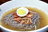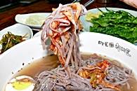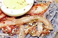 豚肉のカルビ、塩焼き、キムチの黒米麺