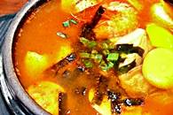 韓国料理の材料の一つに豆腐があります。日本の豆腐とはちょっと変わったものもあります。たとえば、おから。韓国語では<コンビジ>といいますが、このおからを使った<コンビジチゲ>も香ばしくて美味しいメニュー。また、にがりを入れないで、柔らかい豆腐がスントゥブと言います。