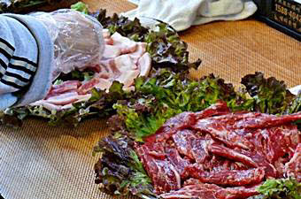 味付けカルビ肉、豚の五枚肉