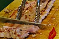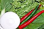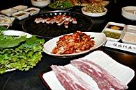 辛味噌で熟成した三枚肉、即席韓国式うどん、野菜盛り合わせ