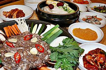 参鶏湯、カルビスープ、ビビンバ、ねぎお好み焼き、冷麺など