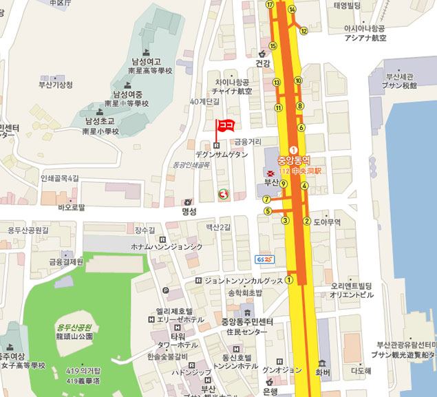 釜山広域市 中区(ジュング)中央洞3街( ジュンアンドンサンガ)13-15番地