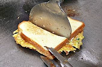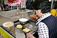 韓国リピーターの中には、<トースト>という軽食があるのをご存知の方も多いと思います。大きな鉄板の上で卵と食パン2枚をマーガリンで焼いて、パンに卵をはさんで食べるのです。ソウルや釜山などの繁華街見かけるとってもポピュラーな軽食です。釜山の国際市場近くにある「シンチャントースト」は、30年もの間、変わらず同じ場所でトーストを焼いているという歴史のあるお店。朝から晩まで、常連さんや市場への買い物客、最近は日本からの観光客で1日中賑わうお店です。