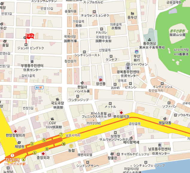 住所 釜山広域市 中区(ジュング)富平洞2街(ブピョンドンイガ)22-13番地