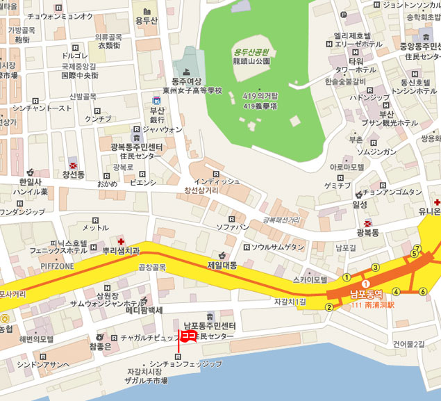 釜山広域市 中区(ジュング)南浦洞4街(ナンポサガ)37-1番地、チャガルチ市場2階