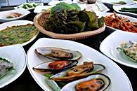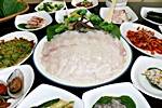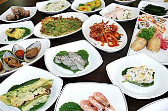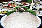 お刺身セット、焼き魚、海鮮鍋、タコの辛いソース炒め