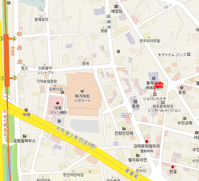 現地 アクセス  地下鉄1号線のトンネ(東莱・Dongnae)駅2番出口から徒歩約10分